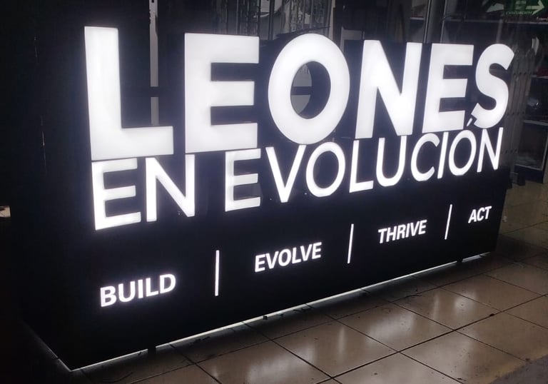 Fabricamos anuncios 3D en aluminio, acrílico y vinil, destacando con letras neón y cajas de luz.